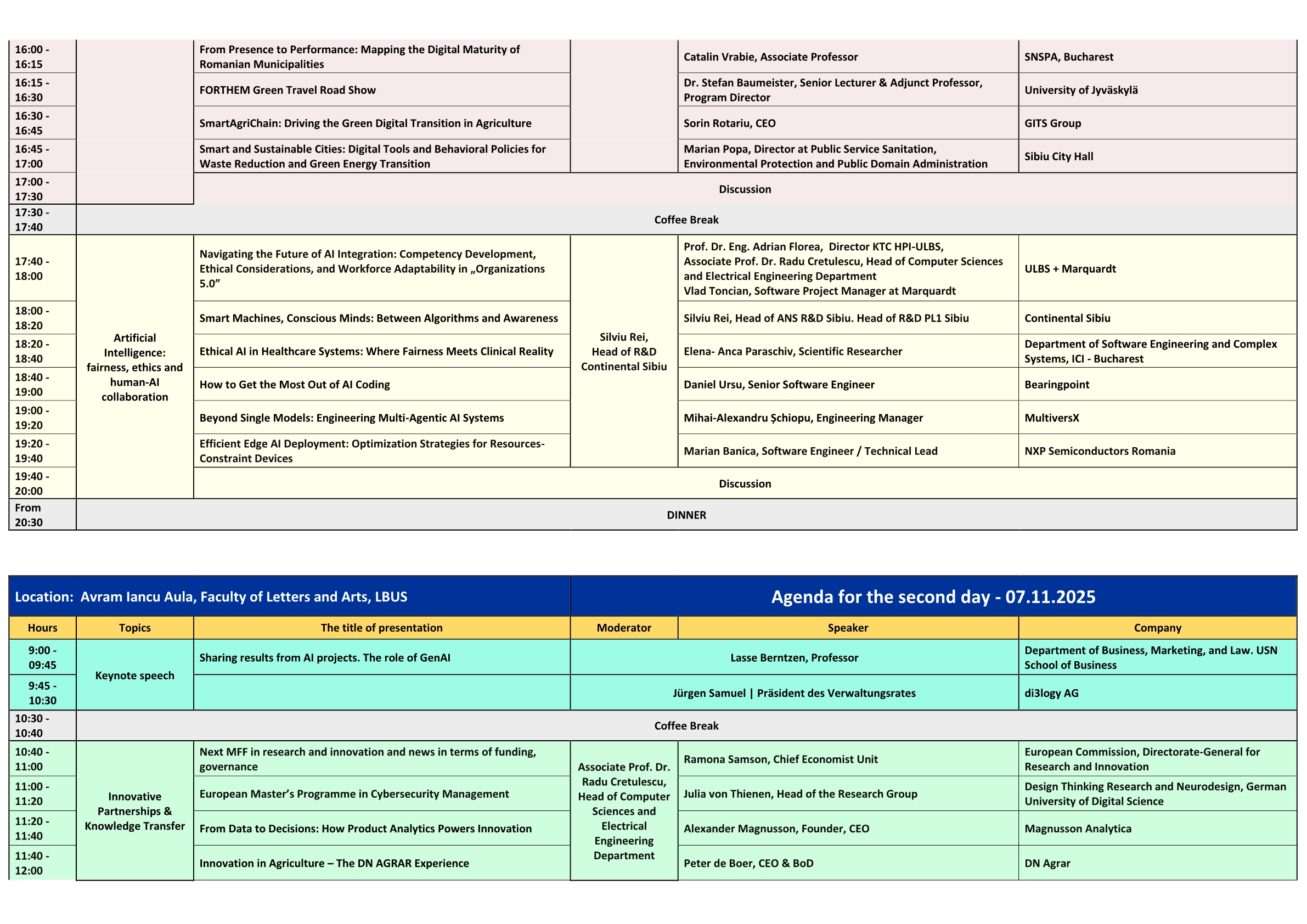 On the other hand, the pace of domain knowledge accumulation for employees of companies and the rhythm of the adaptation of the school curriculum to emerging technologies are much slower. Thus, it results in a major gap. School cannot be left behind. The education curricula should be keep up-to-date. Upskilling and lifelong learning for employees are mandatory to cope with these technologies. In addition to the aforementioned themes, Education, Blockchain technologies, and Digital Transformation in both industry and society continue to be focal points at SID2025. The conference serves as a valuable opportunity for all ULBS partners to share the latest research and innovation outcomes from their ongoing projects.