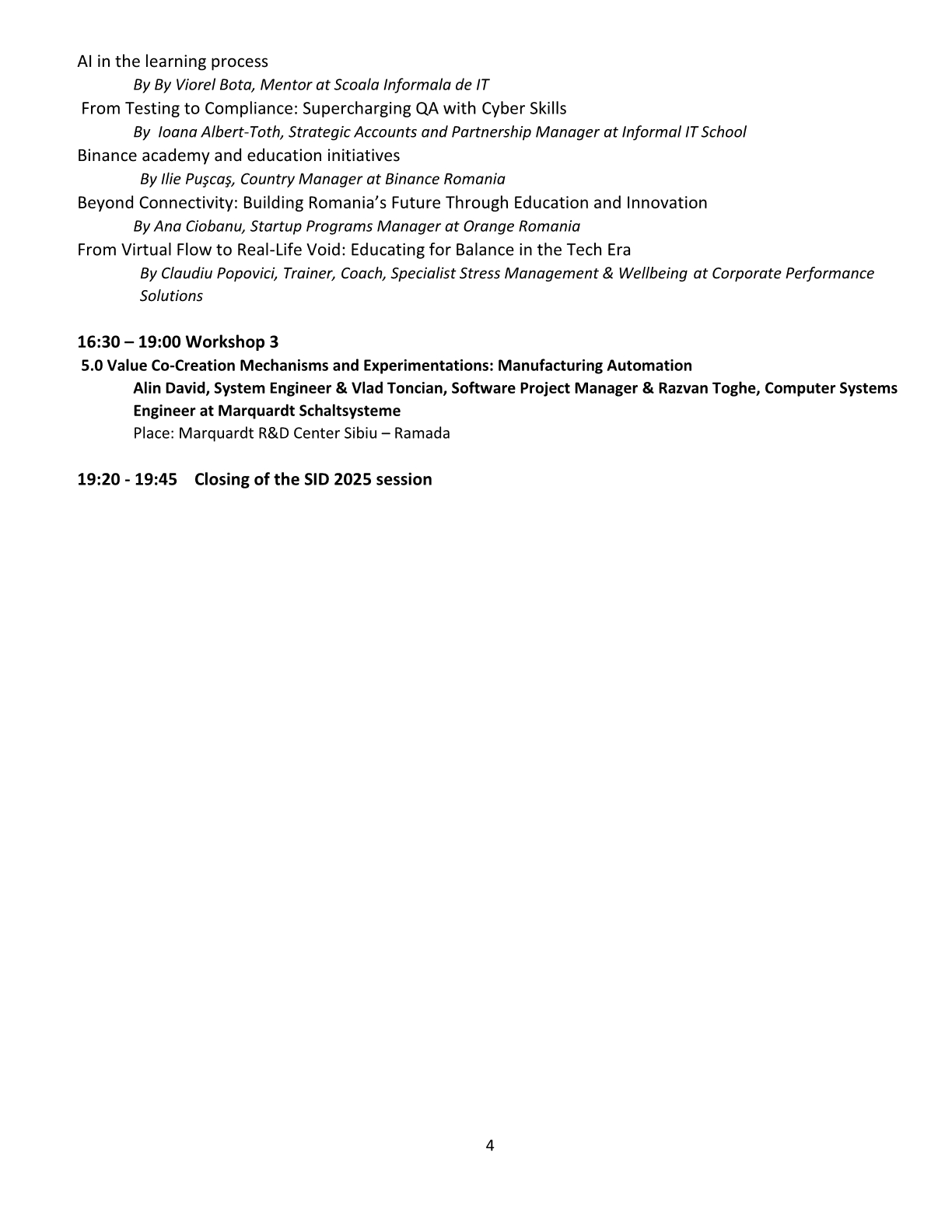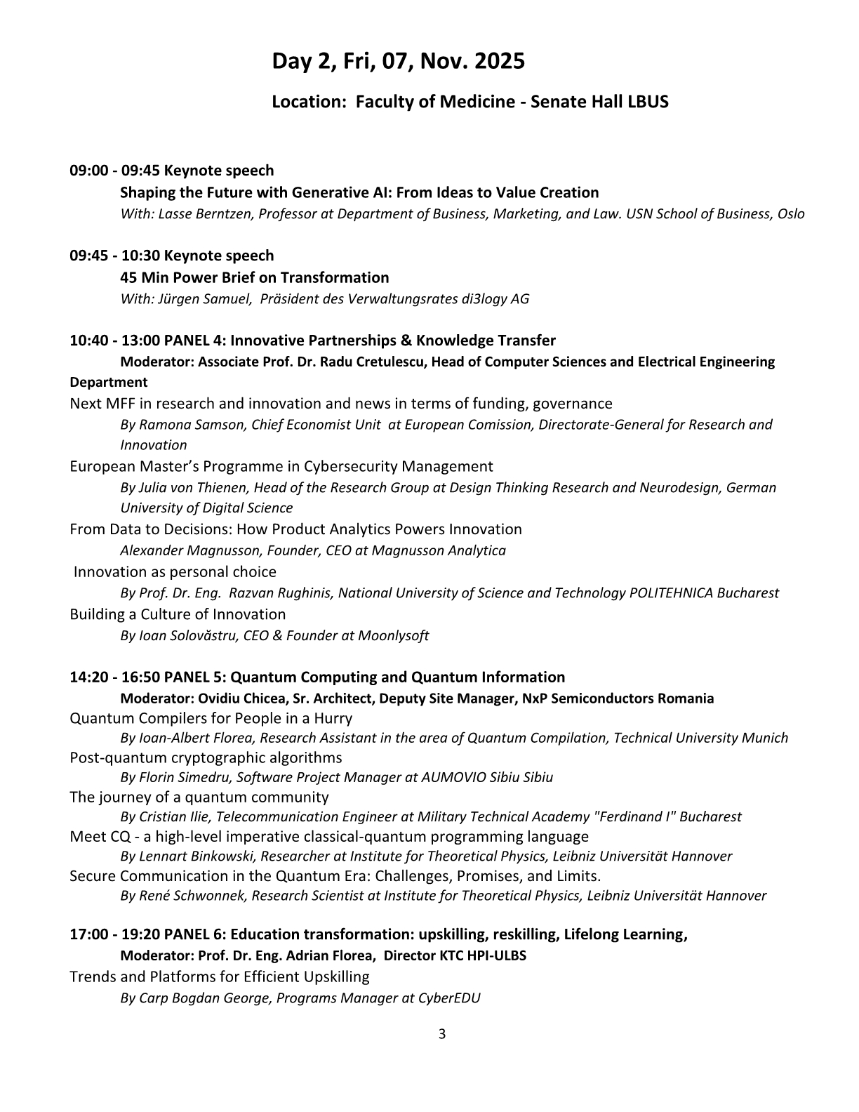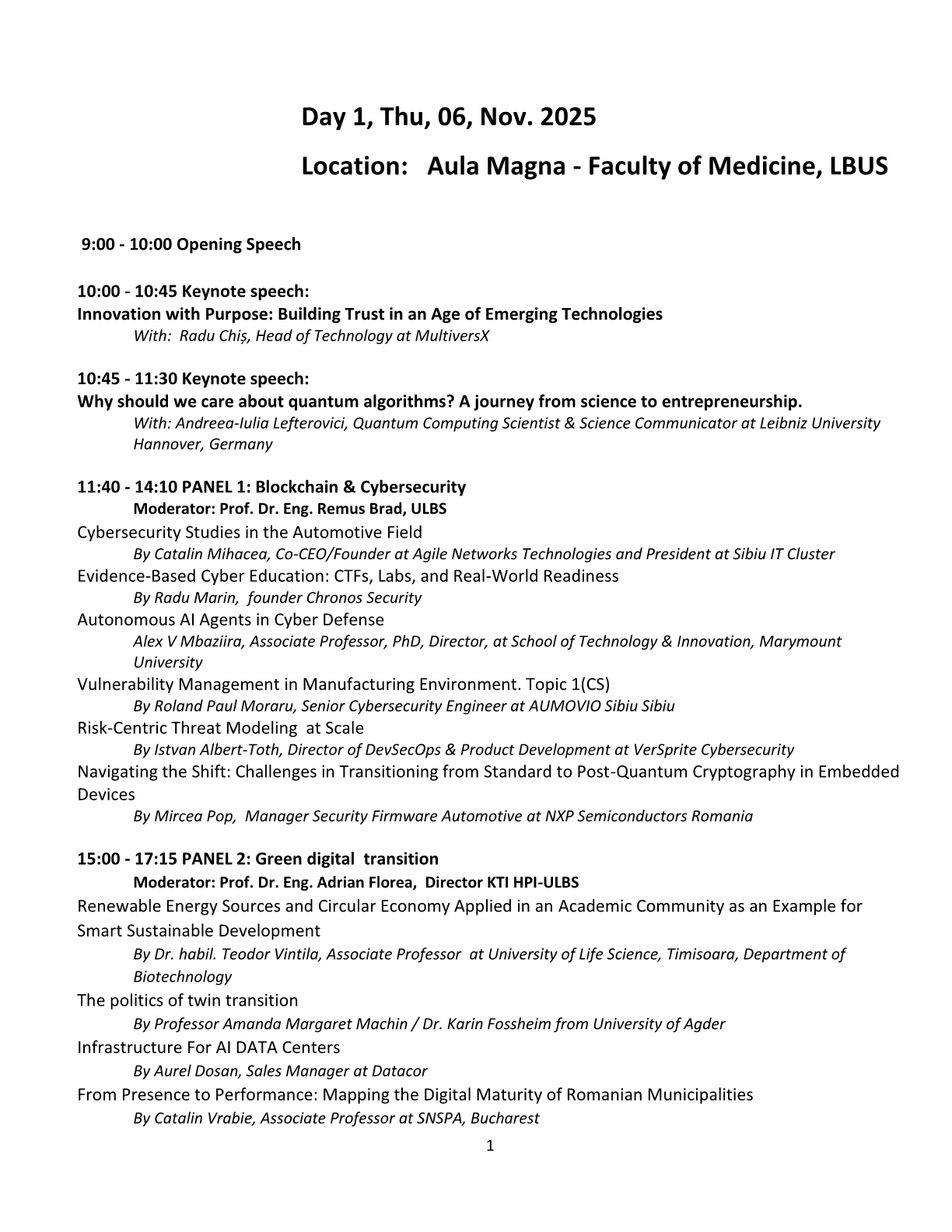 On the other hand, the pace of domain knowledge accumulation for employees of companies and the rhythm of the adaptation of the school curriculum to emerging technologies are much slower. Thus, it results in a major gap. School cannot be left behind. The education curricula should be keep up-to-date. Upskilling and lifelong learning for employees are mandatory to cope with these technologies. In addition to the aforementioned themes, Education, Blockchain technologies, and Digital Transformation in both industry and society continue to be focal points at SID2025. The conference serves as a valuable opportunity for all ULBS partners to share the latest research and innovation outcomes from their ongoing projects.