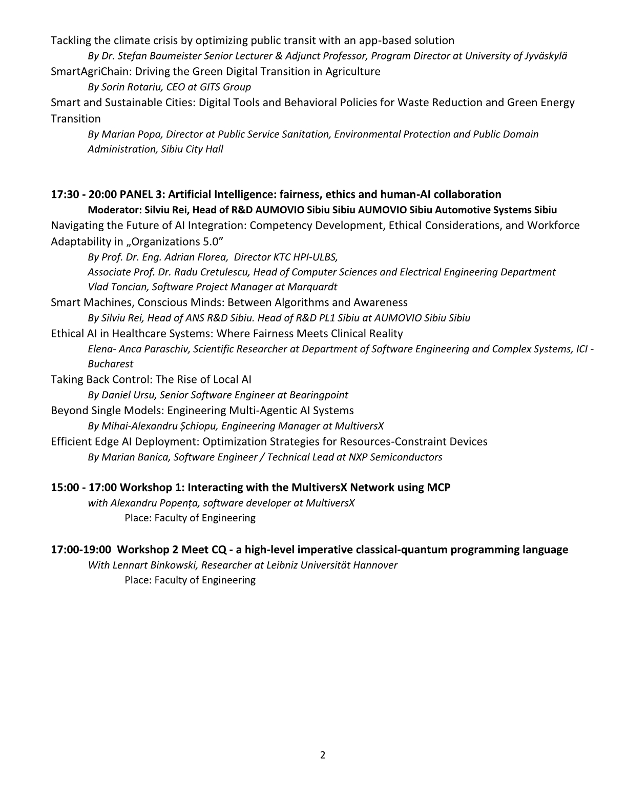 Despite these challenges, the path started in 2020 is irreversible. Sibiu Innovation Days 2025 has become and must remain a significant landmark on the innovation map in Romania, playing a crucial role in promoting collaborative networks between industry experts, public administration and the academic research community. The Hasso Plattner Knowledge Transfer Institute (HPI-ULBS), hosted by Lucian Blaga University of Sibiu, intends to become a strategic institutional center driving regional innovation, digital transformation, and applied research in Romania, particularly south of Transylvania. In the last few years, HPI-ULBS consolidated its role as a catalyst for academic-industry collaboration, delivering tangible results across prototyping, intellectual property, and research valorization with a profound impact on shaping the economic and social vitality of the entire region. Furthermore, innovation cannot be done alone but in collaboration for co-creation value. For Romania, which is located in last place in the European Innovation Scoreboard (EIS) 2024, a change of mindset and a need for networking and exchange of good practices with academic and business partners from countries with a high degree of innovation are required.